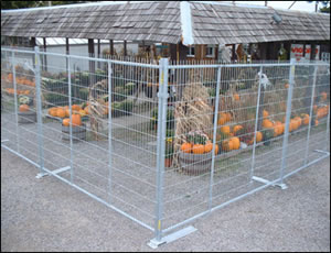 VRE’s Portable Fencing creates secured areas for seasonal garden centers, construction sites, indoor or outdoor special events, crowd control and any other application where limited access is desired. Fence panels, base support, hardware, and accessories are all hot dip galvanized for longer life and rust prevention. Panels are 7½’ high with welded wire and tubular square posts, providing infinite possibilities for layouts and installation.